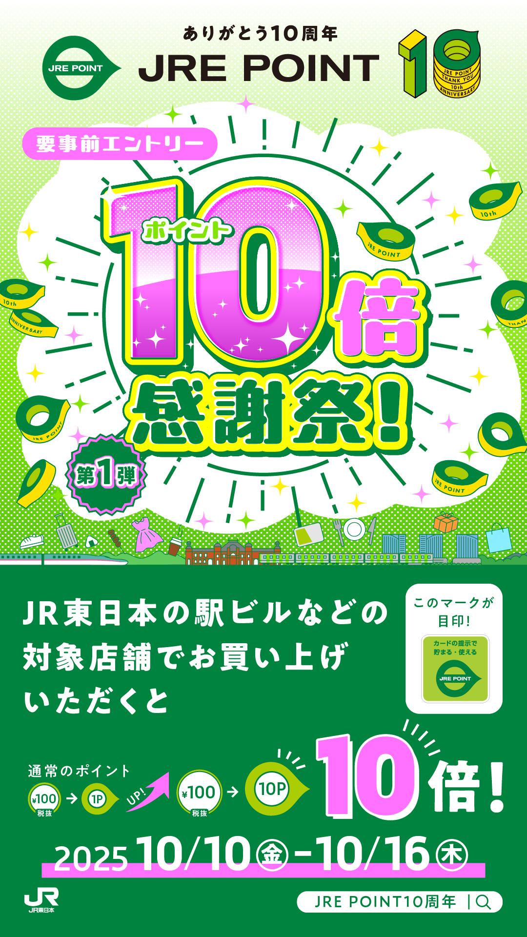 10周年を記念して10月10日(金)〜16日(木)の7日間、JRE POINT10倍感謝祭を開催します!!
