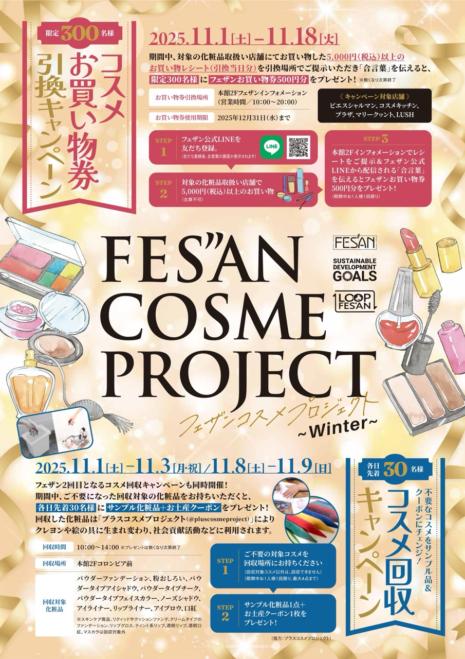 11月1日(土)~11月18日(火)の期間で、2回目となる「フェザンコスメプロジェクト」を開催いたします!💄