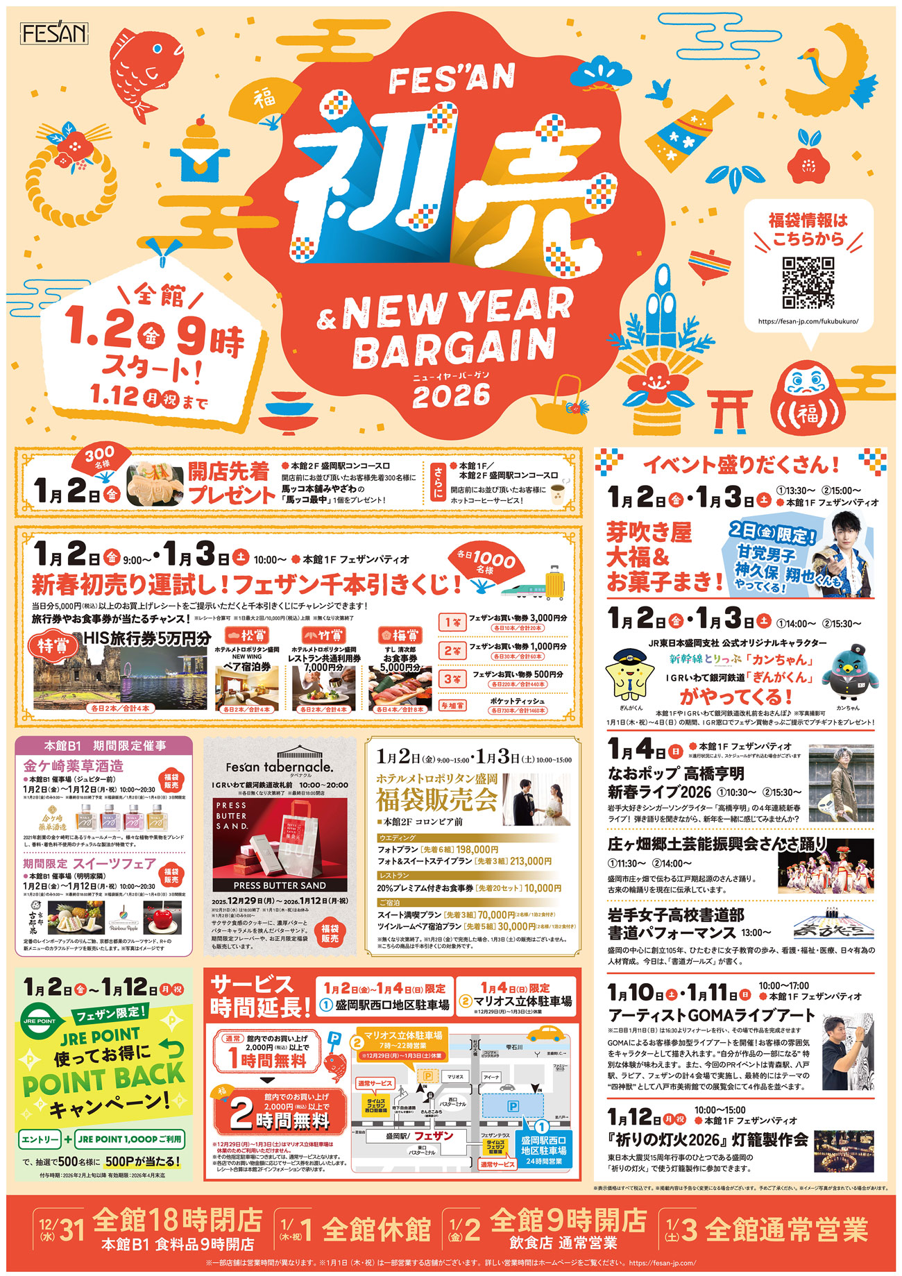 1/2(金)~1/12(月・祝)フェザン初売り&NEWYEAR BARGAINを開催