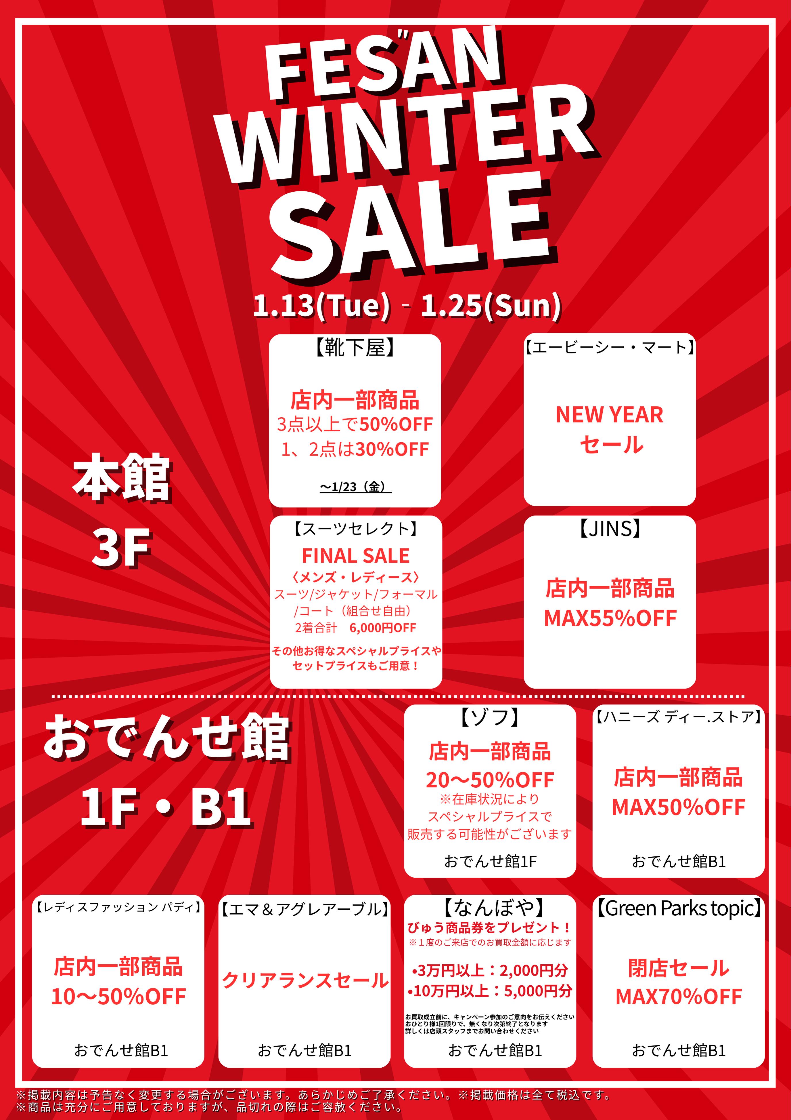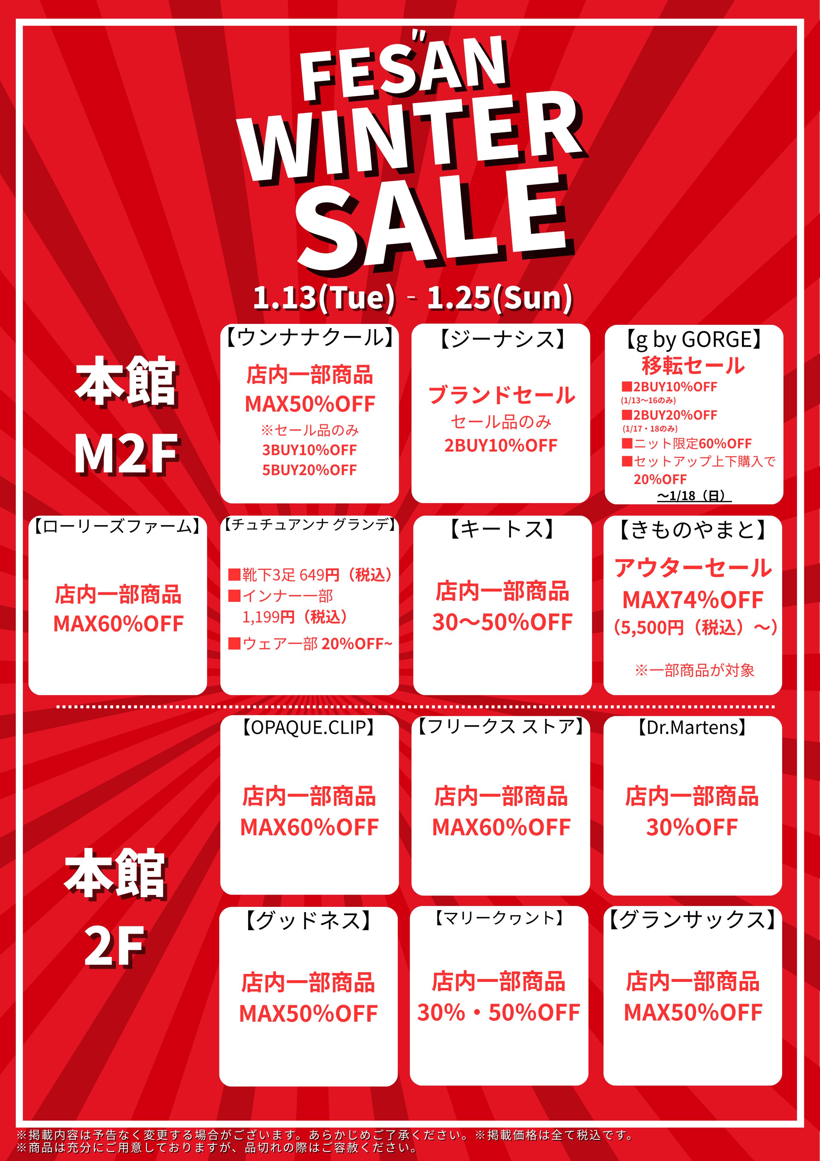 1/13(火)〜1/25(日) FES”AN WINTER SALEを開催!