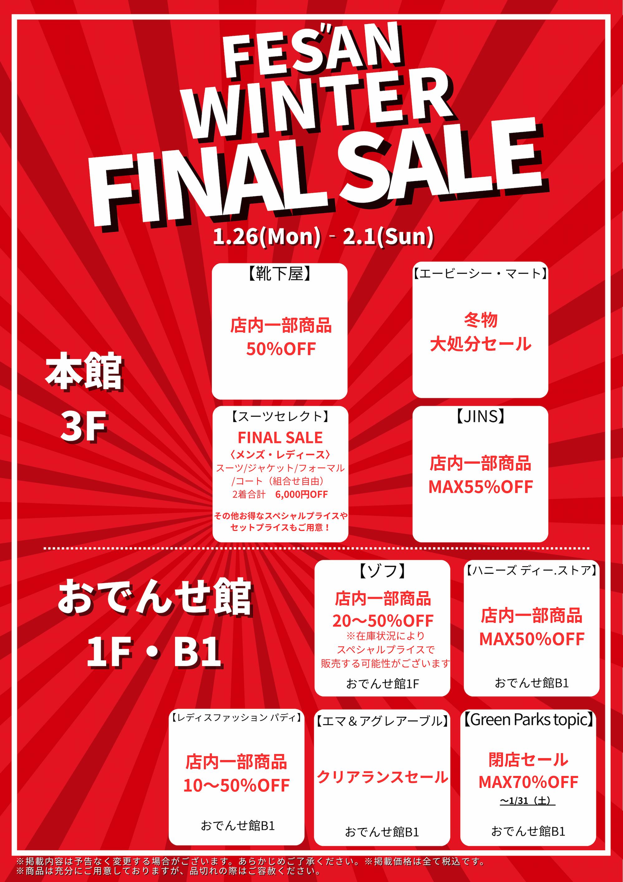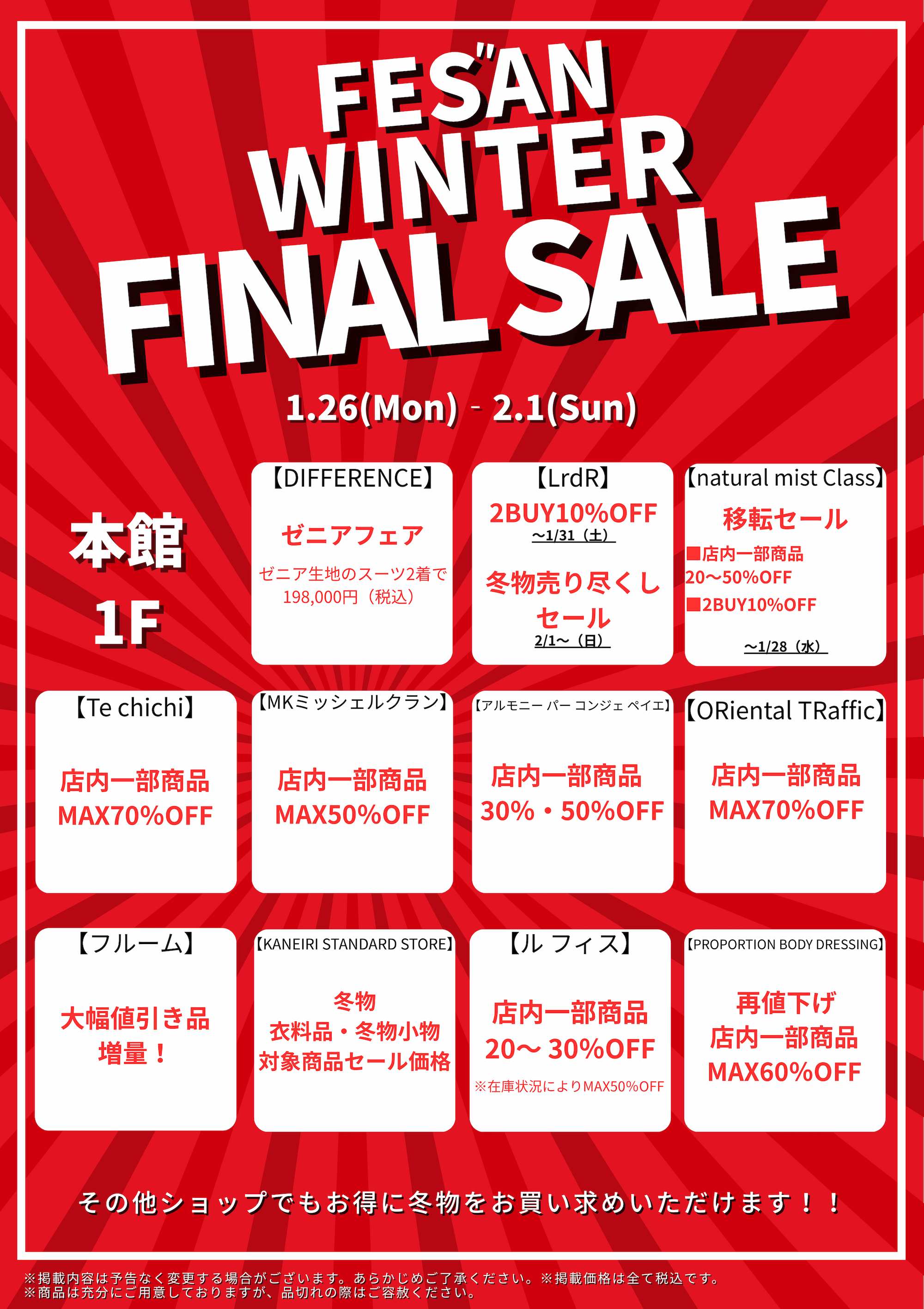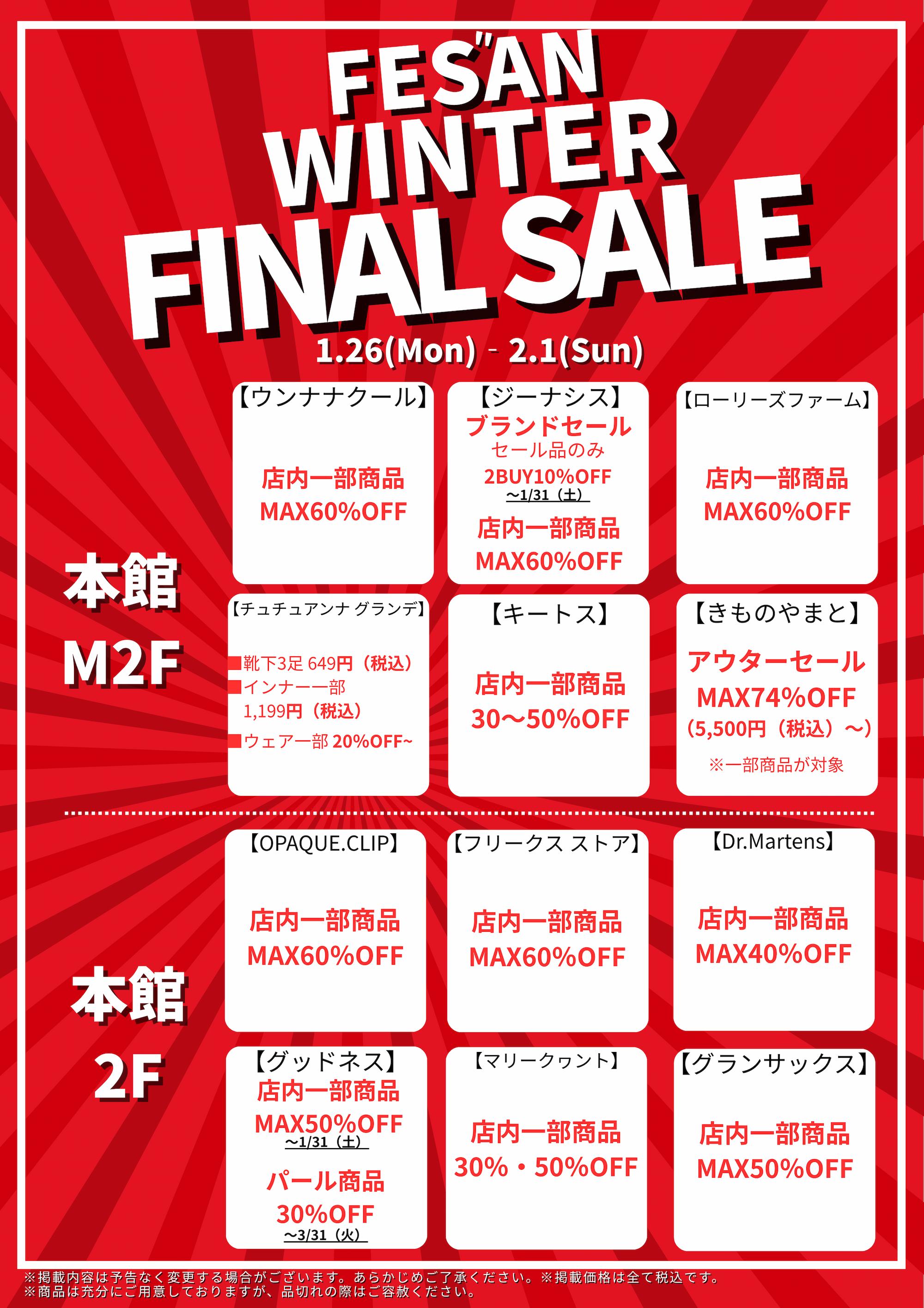 1/26(月)~2/1(日) FES”AN WINTER FINAL SALEを開催!