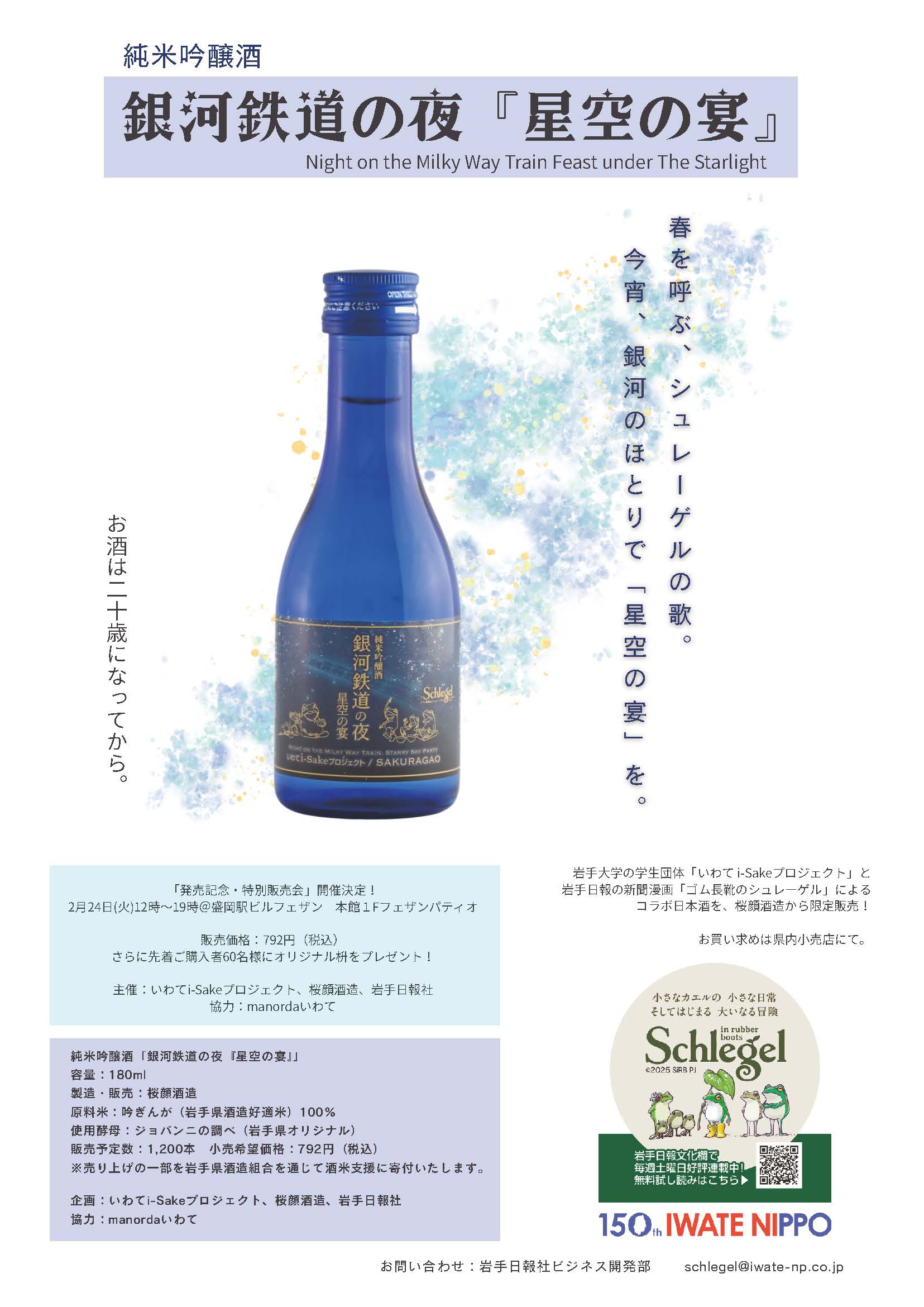 同じく宮沢賢治作品をモチーフにした桜顔酒造の「純米吟醸銀河鉄道の夜」とのコラボレーション企画を提案し、商品化に至りました。