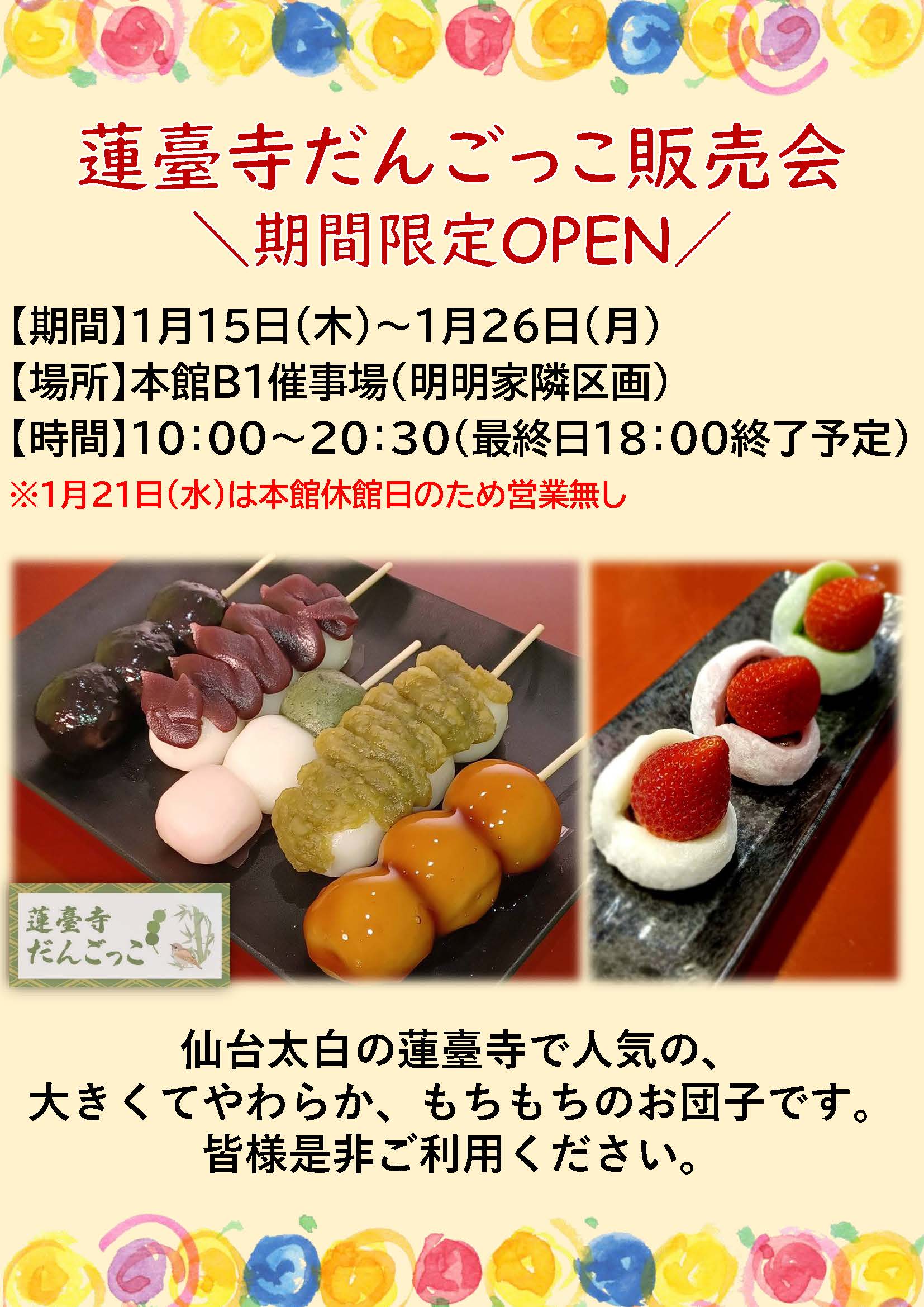 期間:1/15(木)〜1/26(月)※1/21(水)は本館休館日のため営業無し。