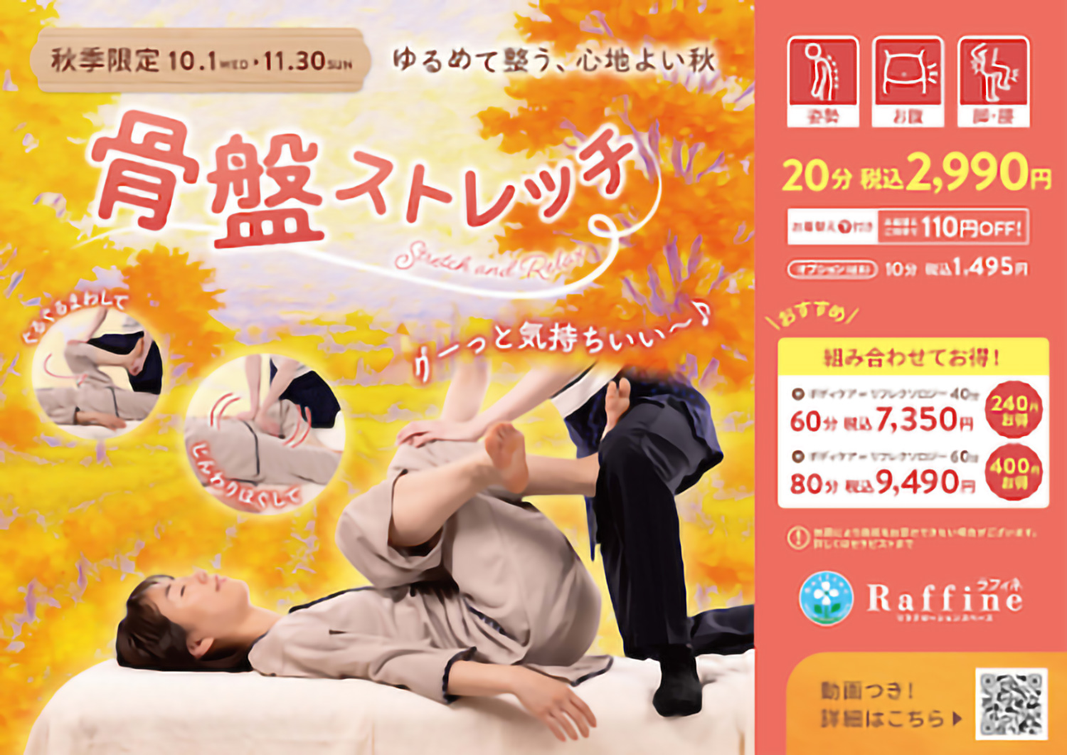 【秋季限定キャンペーン骨盤ストレッチのご案内】[ラフィネ]