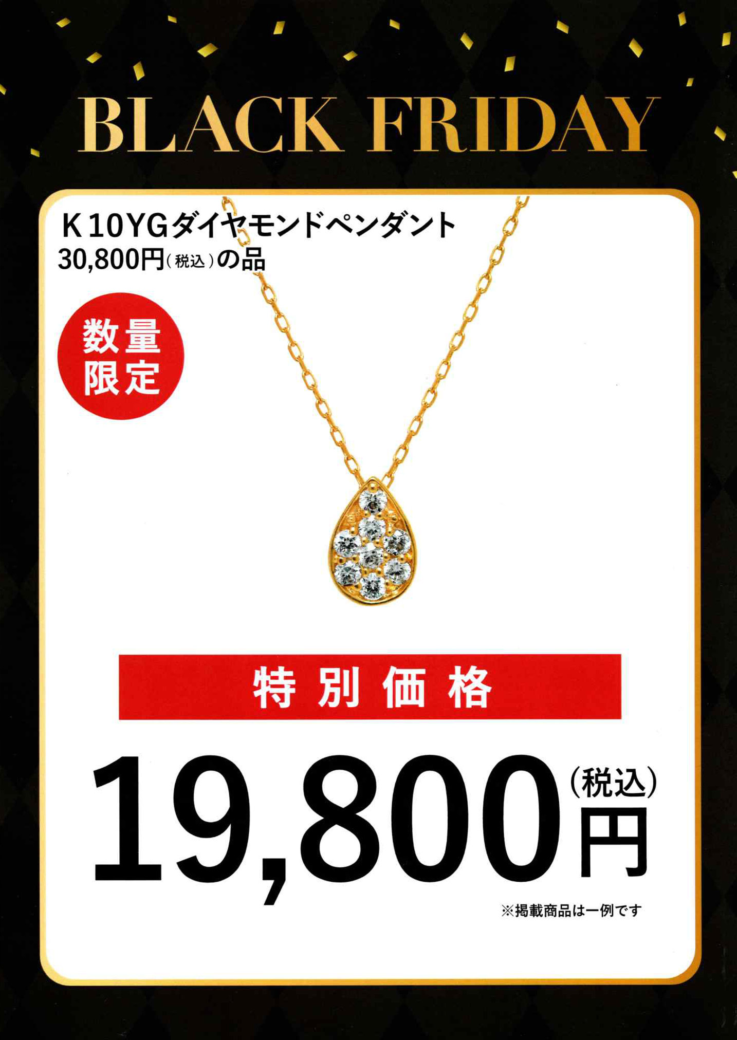 K10YGダイヤモンドペンダントが通常価格30,800円(税込)から