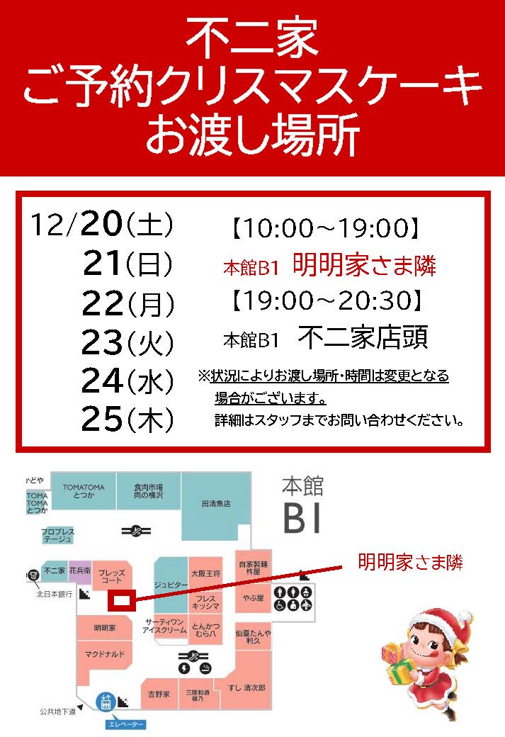ご予約クリスマスケーキのお渡しについて[不二家]