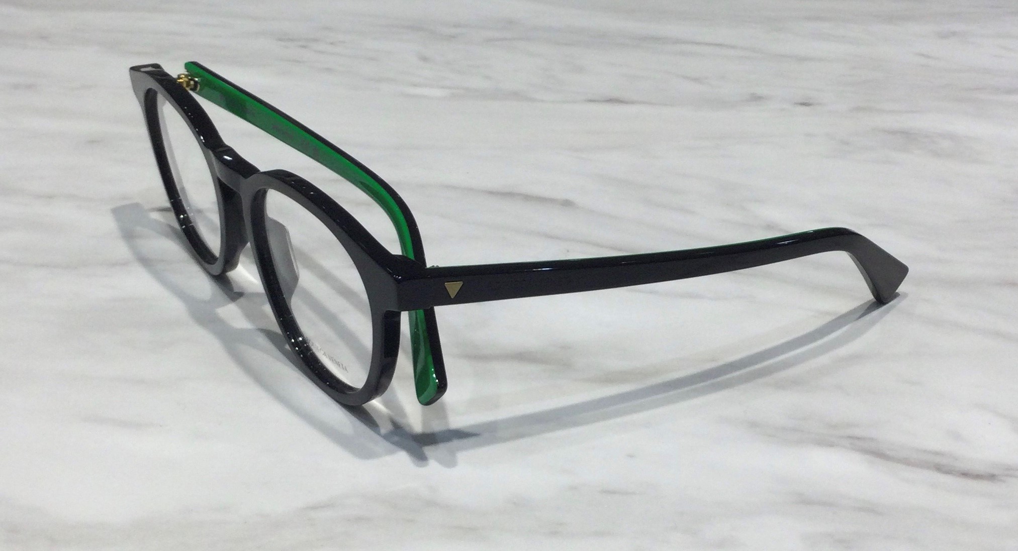 テンプルの外側はブラック、内側はBOTTEGAカラーのグリーンになっていて素敵❤︎