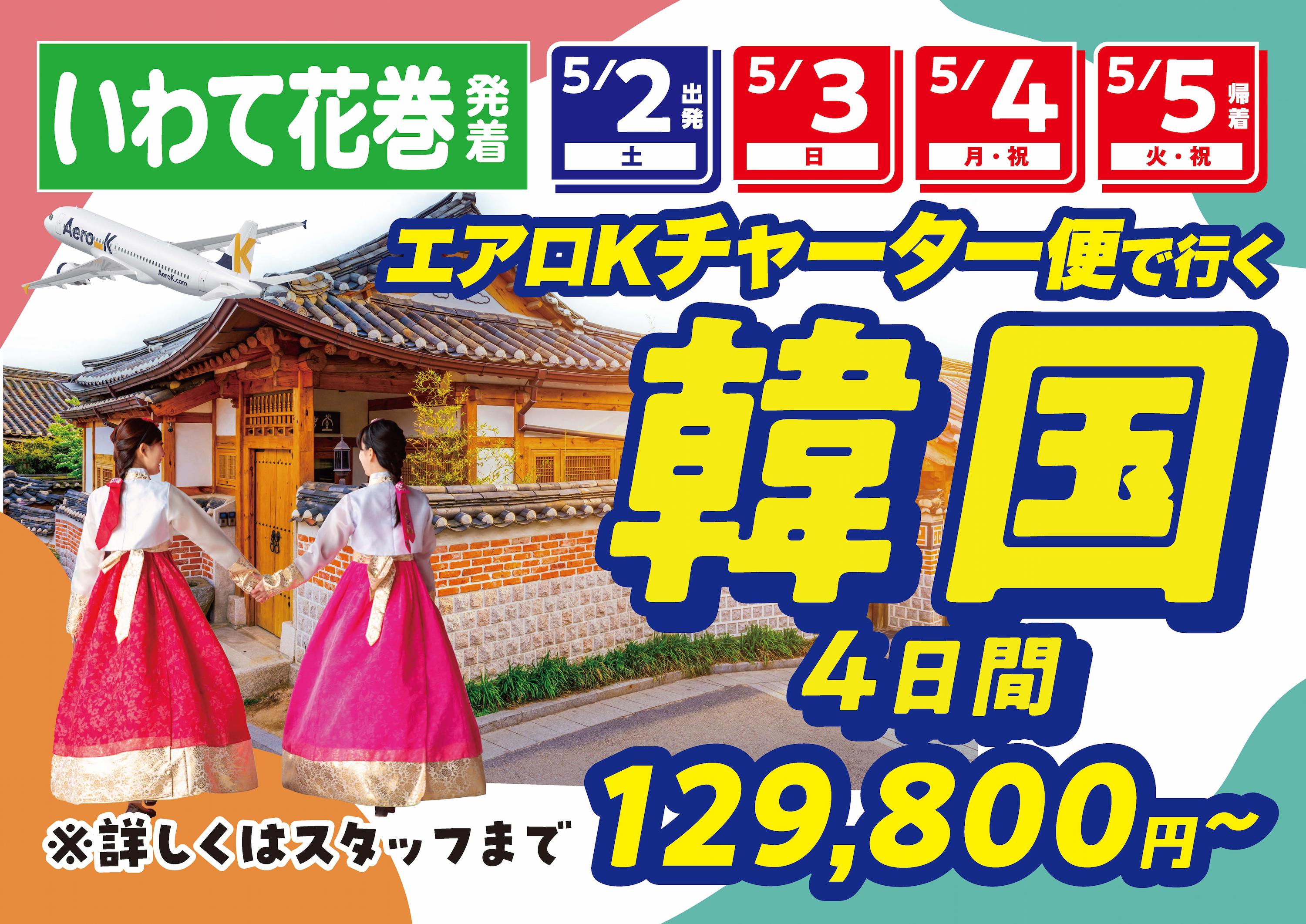 ゴールデンウイークも花巻チャーター便で行くソウル4日間のツアーを販売いたします。