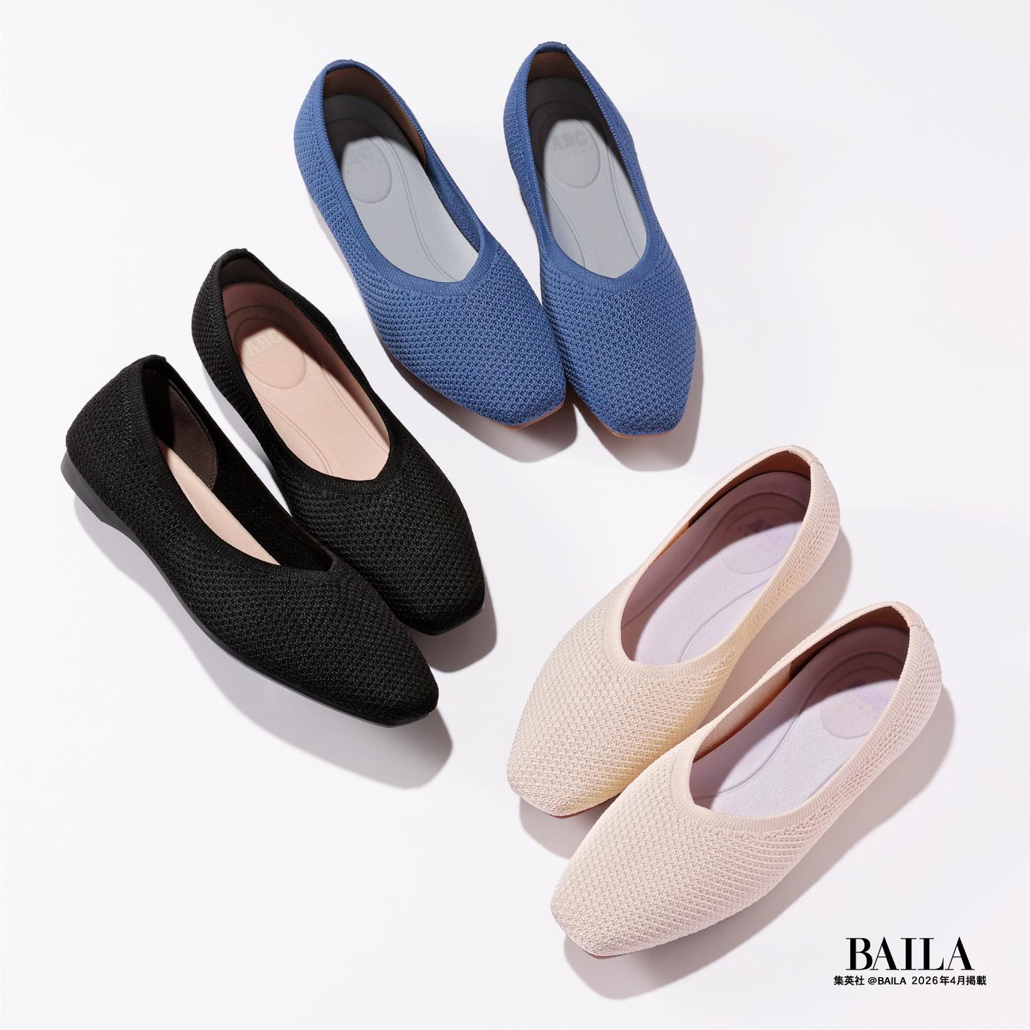 ニット素材のアッパーと柔らかいソールでどんな動きにもついてくる、まるで素足のように快適に履けるニットパンプスです。
